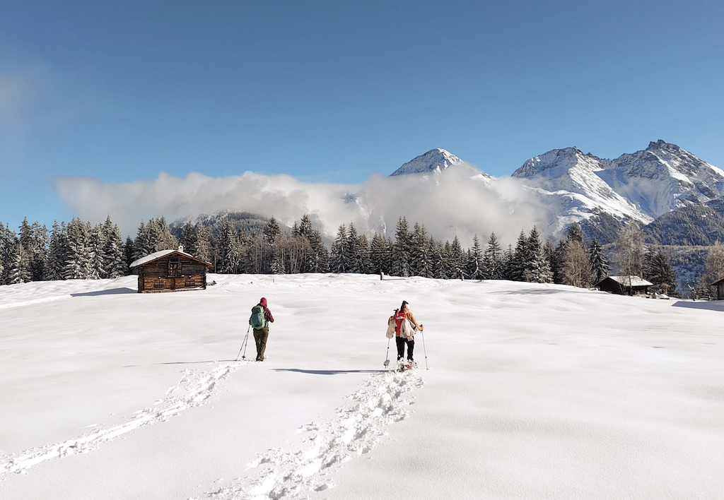Join us for a magical Saturday night snowshoe walk under the full moon in Monbiel, with a local guide and homemade soup, Swiss cheese, and a warm glass of Glühwein.
